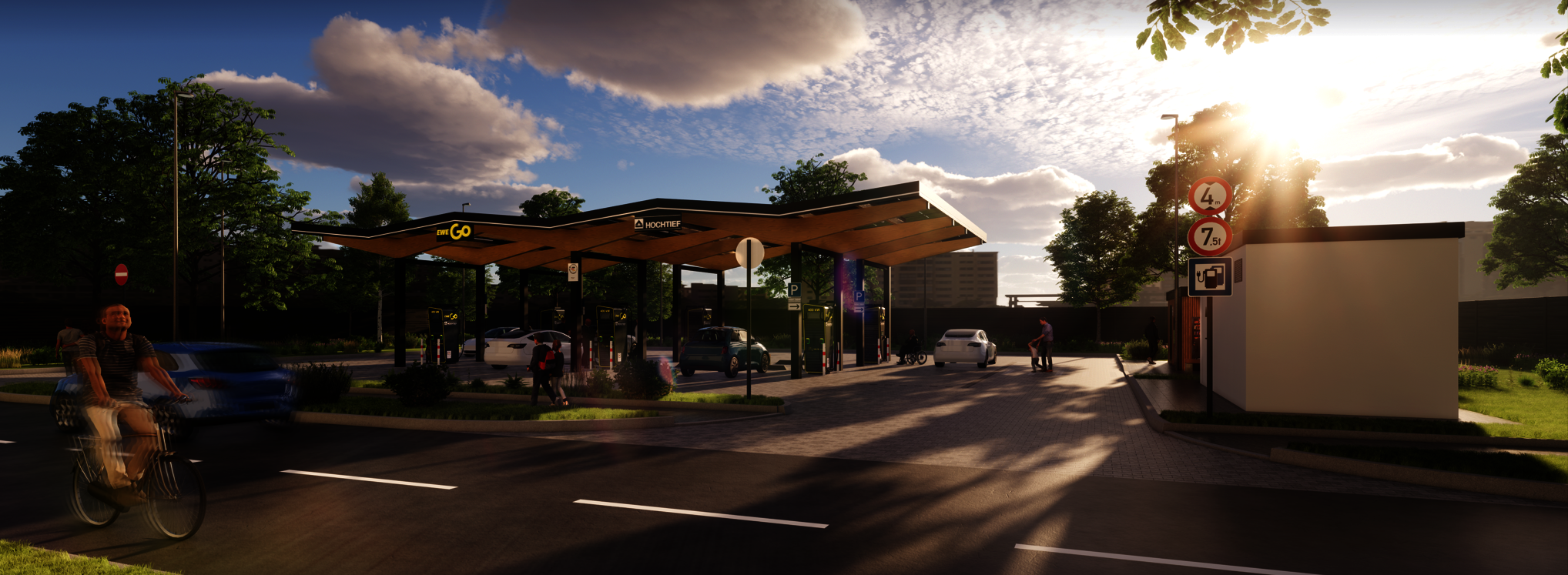 EWE Go und HOCHTIEF haben ihren bisher größten und ersten überdachten Schnellladepark mit 12 HPC-Ladepunkten an der Horneburger Straße in Oer-Erkenschwick in Betrieb genommen. Die Stationen bieten schnelles Laden mit bis zu 400 kW pro Ladestation und werden mit 100 % Ökostrom betrieben. Die nachhaltige Dachkonstruktion aus Holz, CO₂-armem Beton und PV-Modulen unterstreicht das klimafreundliche Gesamtkonzept. Der Ladepark liegt verkehrsgünstig neben einem Fachmarktzentrum und ist Teil des vom Bundesministerium für Verkehr initiierten Deutschlandnetzes, das die flächendeckende Ladeinfrastruktur ausbaut. EWE Go und HOCHTIEF setzen mit dem Projekt ein Zeichen für die Mobilitätswende und die Klimaneutralität Deutschlands.